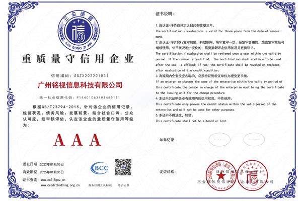 廣州銘視信息科技有限公司(簡稱銘視)一家致力于智能商顯系統解決方案的研發、生產、銷售的的高新技術企業,完善的系統方案:排隊叫號系統、會議預定系統、信息發布系統、商場導航系統、電子班牌系統、醫院分診叫號系統等,根據用戶需求提供定制化方案,應用于酒店、學校、醫院、商場、辦公樓、政務單位等公共場所。產品已經過國家強制3C認證、CE/FCC/Rohs認證,系統軟件已獲得多個軟件著作權證書。自公司創立以來,團隊一直致力于產品的創新,通過對軟件、硬件的不斷升級,增強了用戶體驗,達到更強的易用性與功能的豐富性,為傳統的商業顯示設備賦予更多的現代信息科技的生命力。